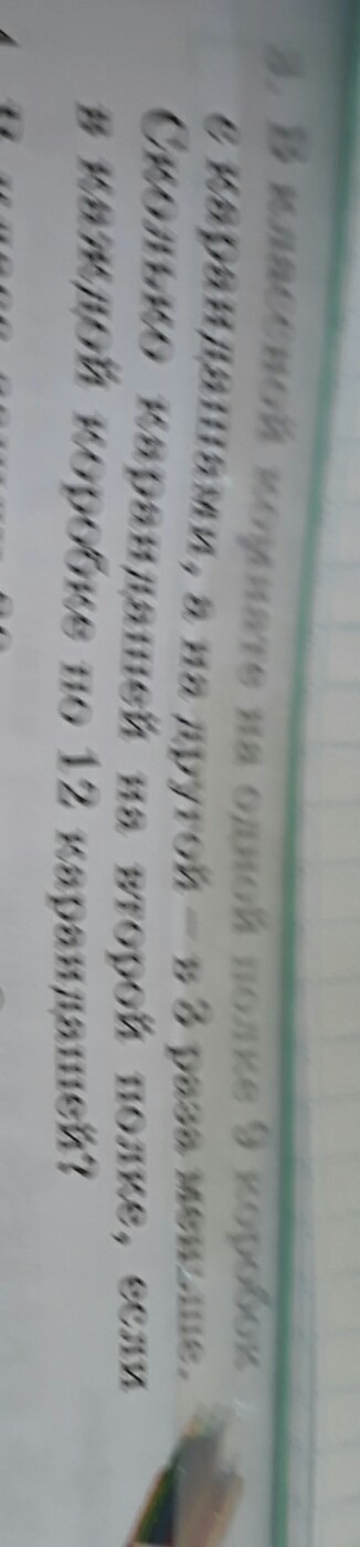в классной комнате на одной полке 9 коробок с карандашами а на другой в 3 раза меньше Сколько тонн овощей на второй полке Если в вашем коробке по 12 карандашей