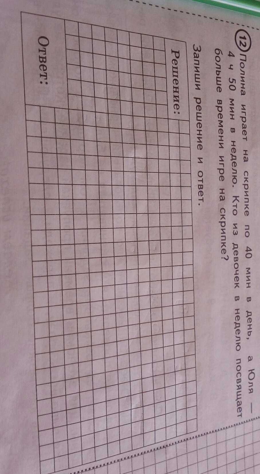Полина играет на скрипке по 40 минут в день аюля 4:50 неделю кто из девочек в неделю посещают больше времени игре на скрипке