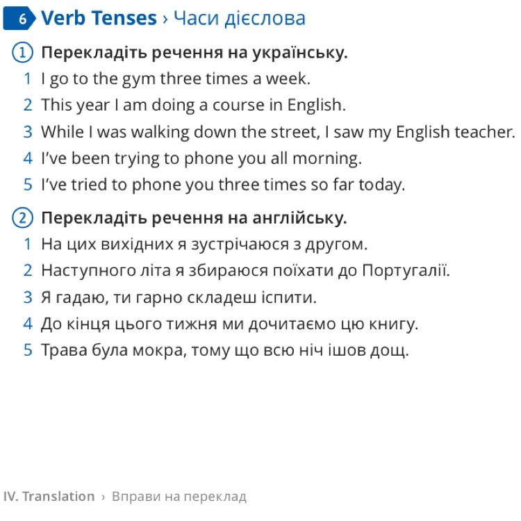 Нужно перевести все упражнение, сначала с английского на русский,а во 2 нужно с украинского на английский