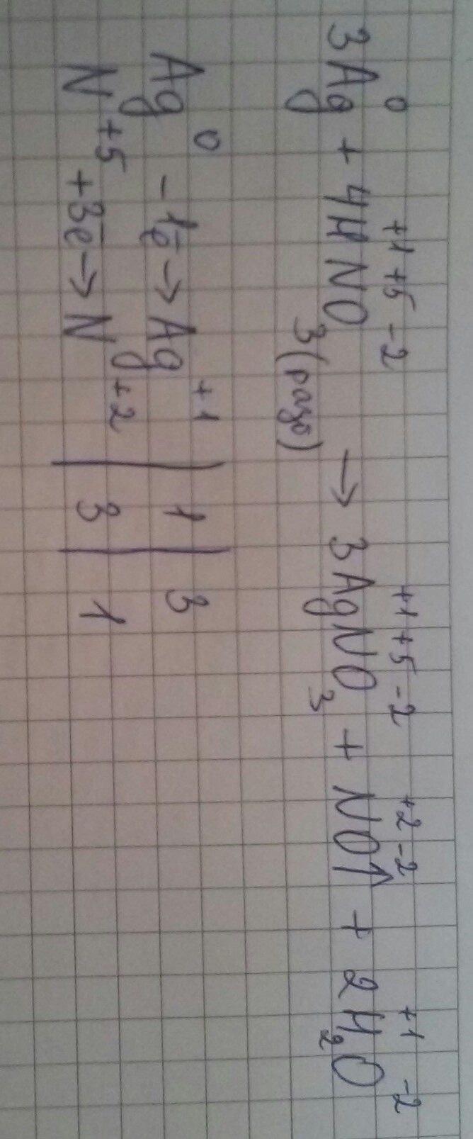 4. Допишите продукты реакций и расставьте коэффициенты в уравнениях, используя метод электронного или электронно-ионного баланса: а) Ag + HNO3 разб. =