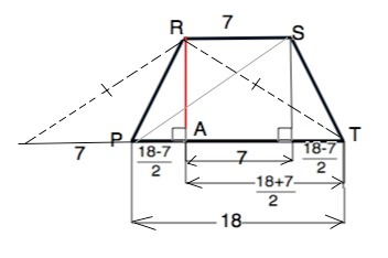 в равнобедренной трапеции PRST(PS\RT)проведена высота RAнайти длину отрезка AT если езвесно AT если извесно что RS=7а PT=18