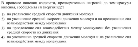В процессе кипения жидкости, предварительно нагретой до температуры кипения, сообщаемая ей энергия идет на...