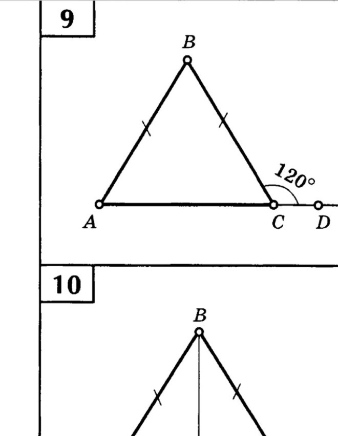 Дан равнобедренный треугольник, то есть АВ = ВС; Угол АСВ и угол ВСД смежные , значит угол АСВ=180°-120°=60°. Так как треугольник равнобедренный, то угол ВАС=АСВ и угол ВАС = 60°. По теореме о сумме углов треугольника угол АВС = 180°-60°-60°=60°