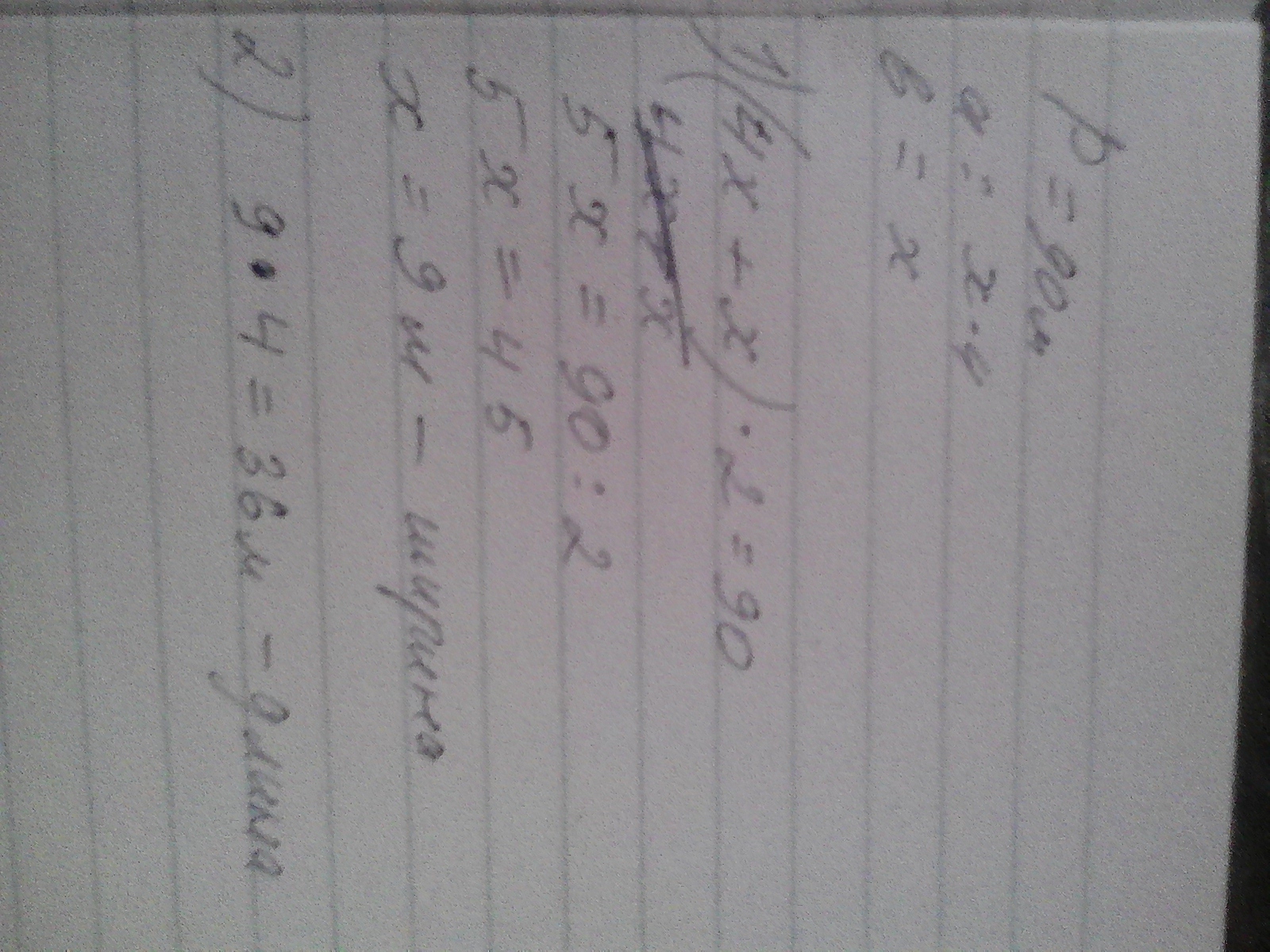ПЕРИМЕТР ПРЯМОУГОЛЬНИКА 90 М ДЛИНА В 4 РАЗА БОЛЬШЕ ШИРИНЫ.НАЙДИ ДЛИНУ И ШИРИНУ ПРЯМОУГОЛЬНИКА ЮЗАПИШИ УСЛОВИЕ