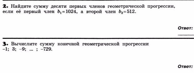2 задание.Найдите сумму первых десяти членов геометрической прогрессии, если её первый член b1=1024, а второй член b2=512.