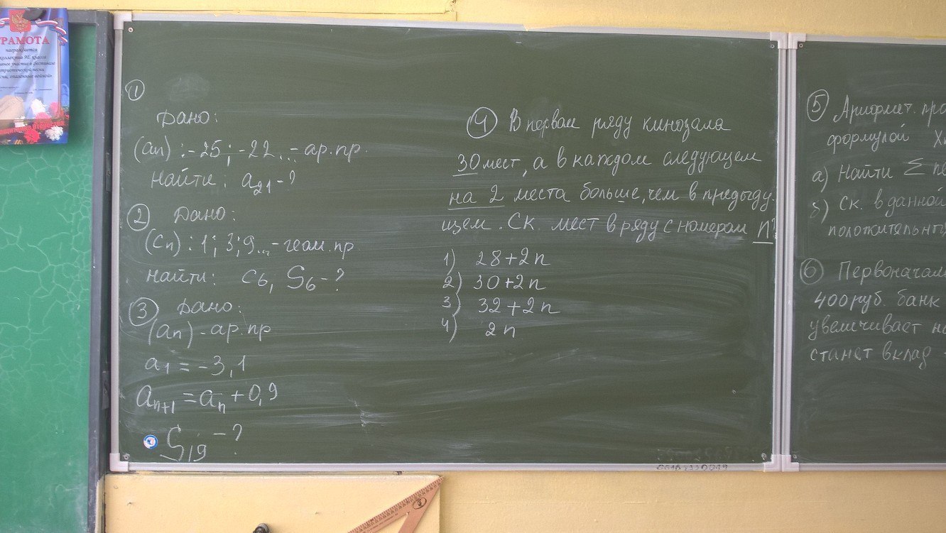3) a1 = -3,1, a2 = -3,1 + 0,9; a19 = -3,1 + 18*0,9 = 13,1