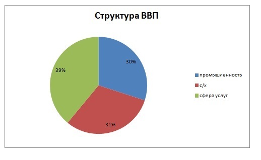 В начале 2000-х гг. в структуре ВВП Индии на промышленность приходилось 30%, на сельское хозяйство — 31%, на сферу услуг — 39%. В структуре промышленного производства удельный вес текстильной и пищевой промышленности — 17 и 11% соответственно, топливной — 16%, черной и цветной металлургии — 14%, машиностроения — 12%.