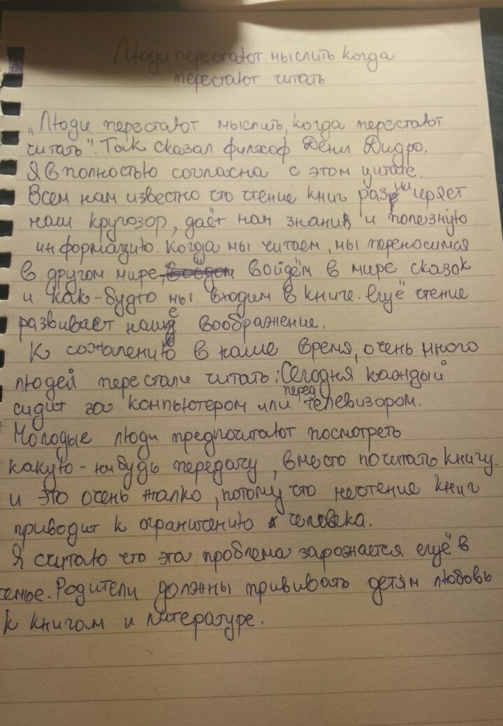 К сожалению, в наше время очень многие люди перестали читать. Сегодня каждый сидит за компьютером или перед телевизором. Молодые люди предпочитают посмотреть какую- нибудь передачу вместо того, чтобы почитать книгу, и это очень печально, потому что нечтение книг приводит к ограничению человека. Я считаю, что эта проблема зарождается еще в семье. Родители должны прививать детям любовь к книгам и литературе.