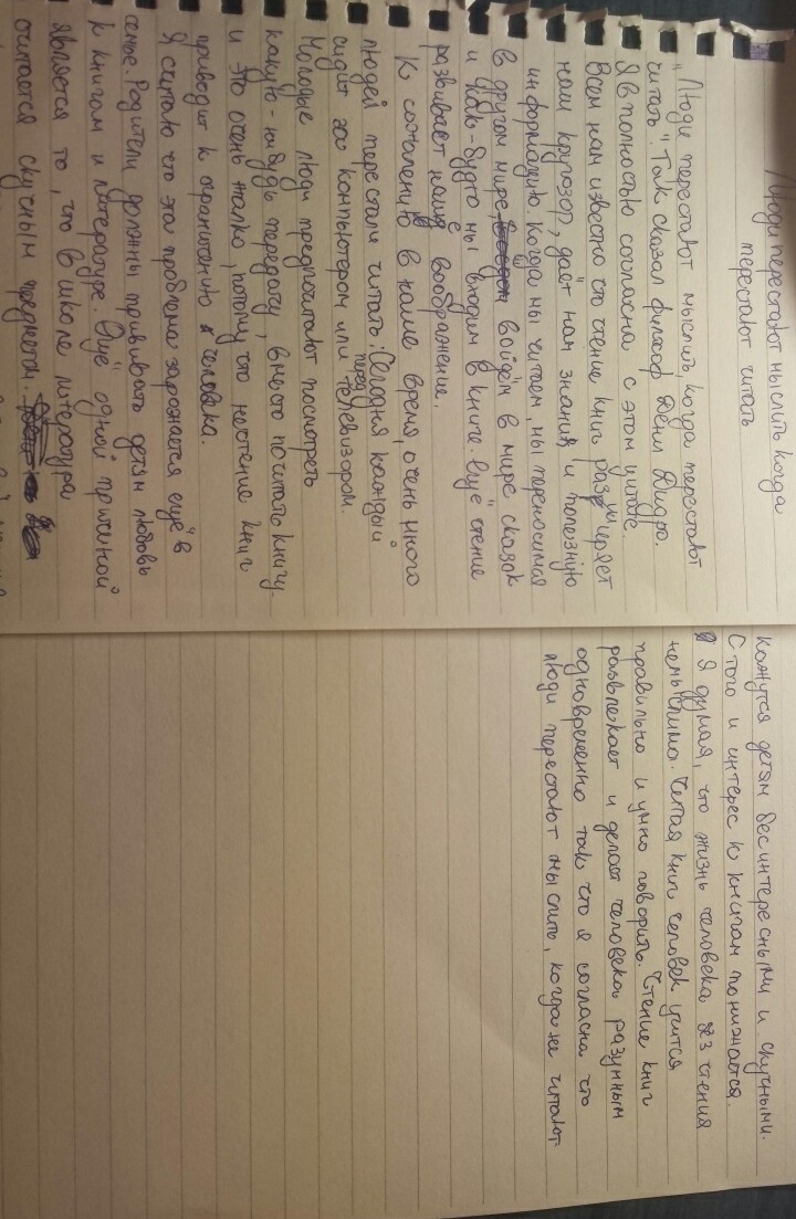 еще одной причиной является то, что в школе литература считается скучным предметом, он кажется детям безынтересным. Оттого и интерес к книгам понижается. Я думаю, что жизнь человека без чтения немыслима. Читая книги, человек учится правильно и грамотно говорить. Чтение книг развивает и развлекает человека одновременно. Так что я согласна, что когда не читают люди перестают мыслить