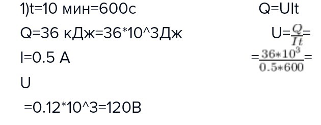 Q=36 кДж=36*10^3Дж U=frac{Q}{It}=
