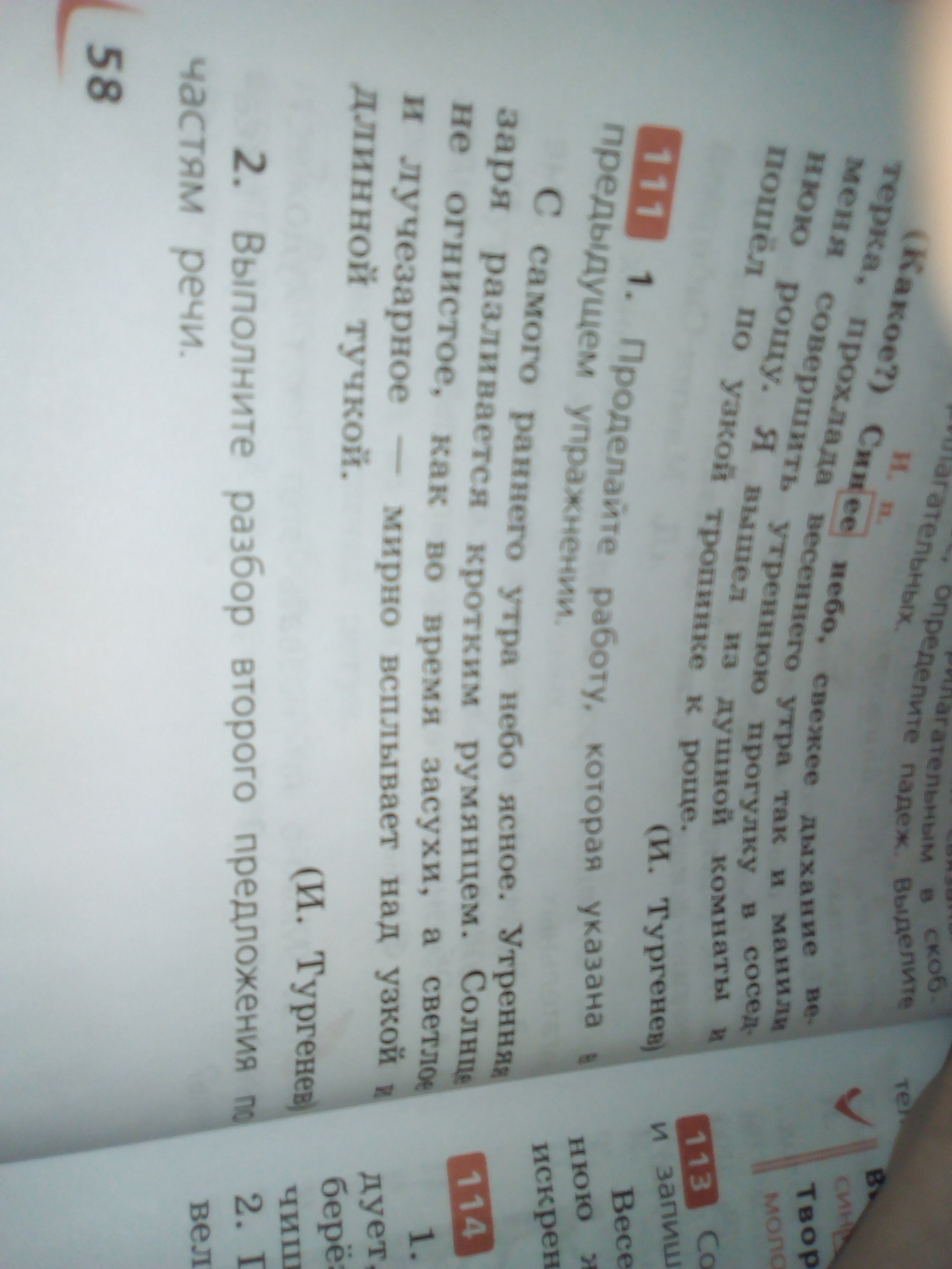 В этом предложении говорится о заре, заря- это подлежащее выражено существительным, подчеркивается одной линией,заря какая? Утренняя-это опрелеление выражено прилагательным,подчеркивается волнистой линией, заря что делает? Разливается-это сказуемое выражено глаголом, подчеркивается двумя линиями, разливается чем? румянцем-это дополнение выражено существительным, подчеркивается- _ _ _ _ пунктиром, румянцем каким? кротким-это определение выражено прилагательным, подчеркивается волнистой линией