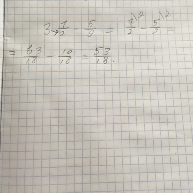 а) 3 1/2 - 5/9=7/2 - 5/9 = 63/18-10/18=2 17/18