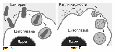 1) А-фагоцитоз, Б- пиноцитоз
