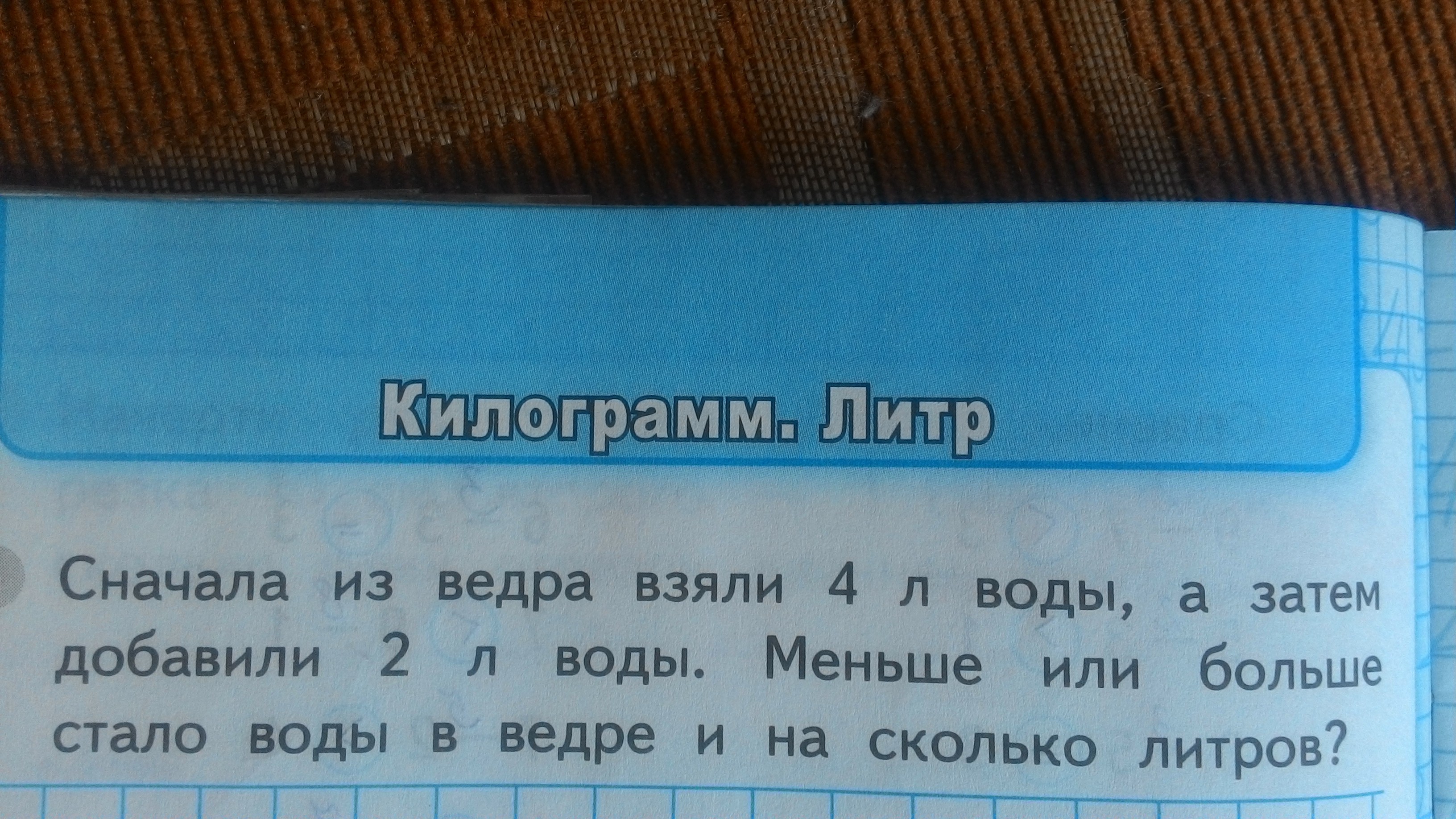 2 умножаешь на 4 и находишь сколько было в 1 ведре потом вычитаешь 4