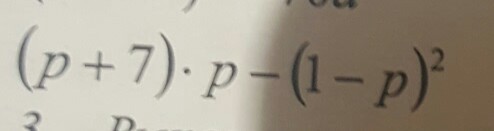 (p+7)*p-(1-p)²=p²+7p-(1-2p+p²)=p²+7p-1+2p-p²=9p-1