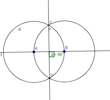 4.проведи вторую окружность того же радиуса с центром В в точке пересечения первой окружности и прямой