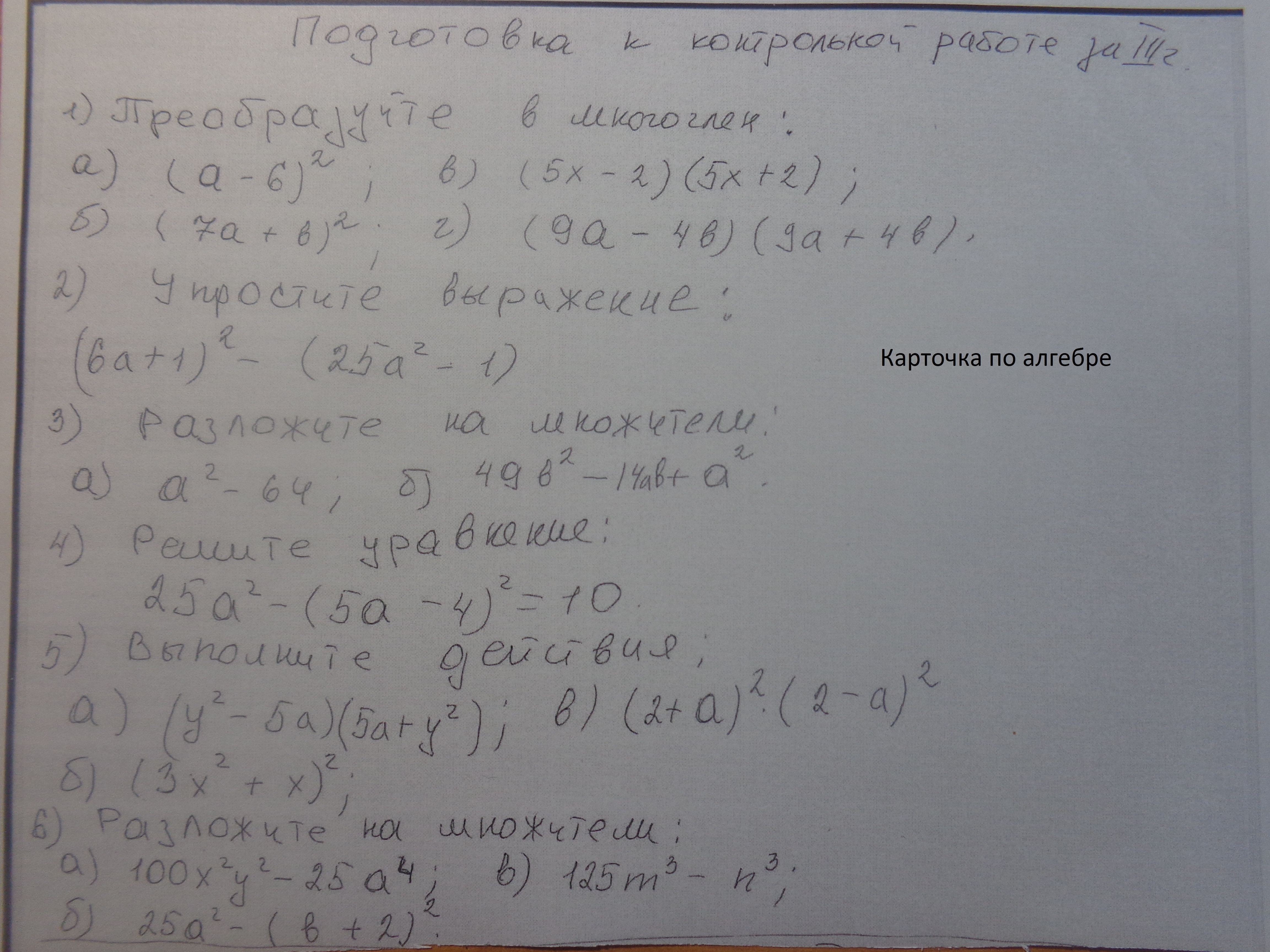 Решите пожалуйста карточку по алгебре. НО отвечайте НА ВСЕ ЗАДАНИЕ! Кто ответит на все вопросы отмечу как лучший! :)