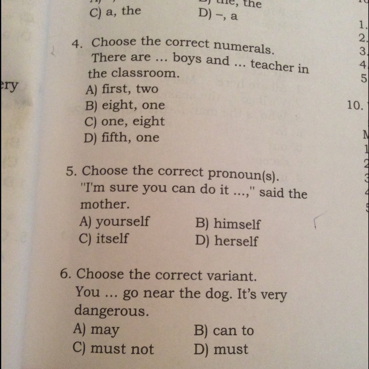 4. fifth или eight,one.