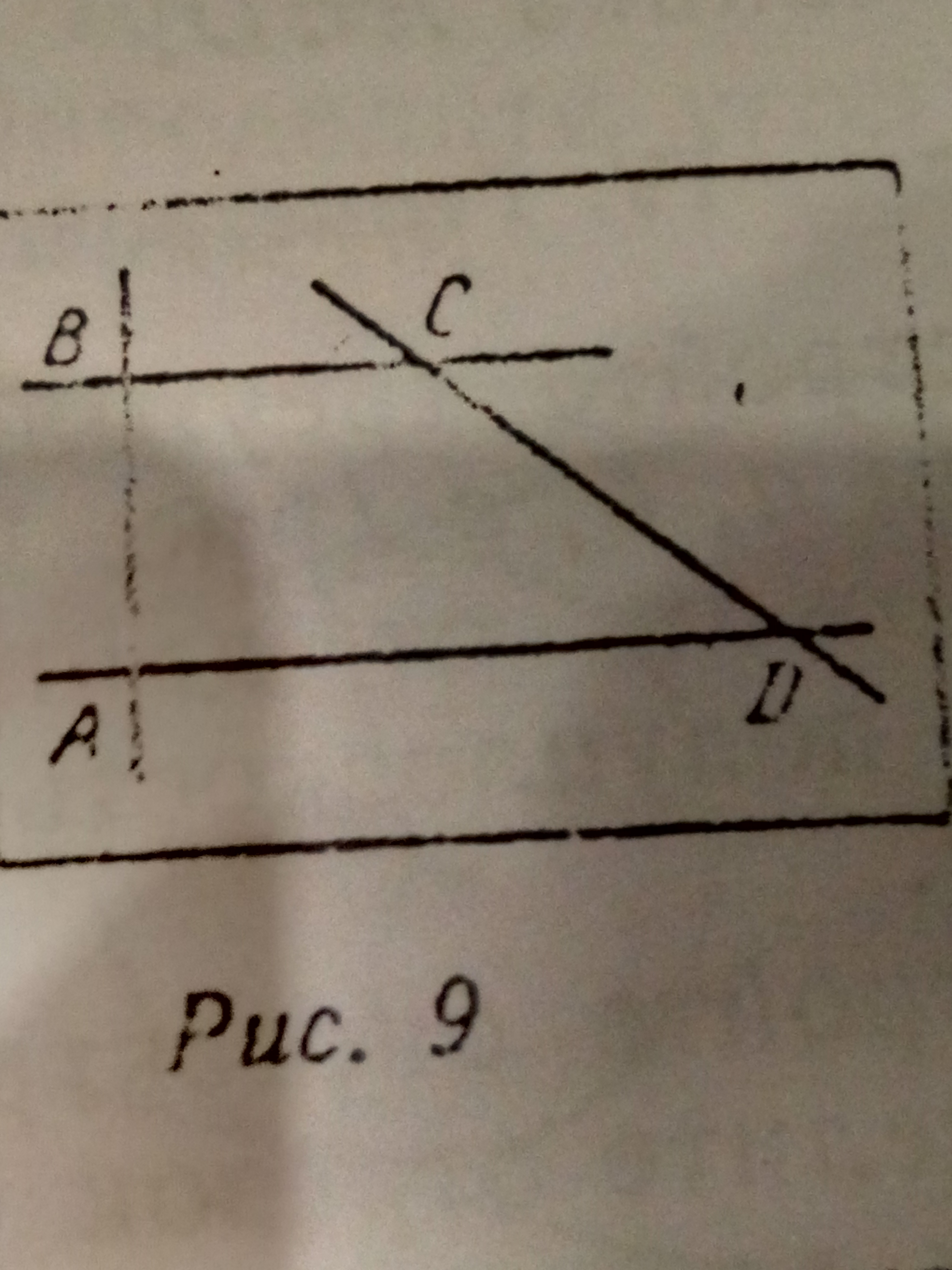 На рис. 9 (фото)прямые АD и ВC перепендикулярны прямой АB. Найдите угол С, если угол D =40 градусов