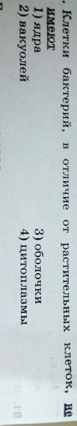 Клетки бактерий, в отличие от растительных клеток не имеют (1) ядра.