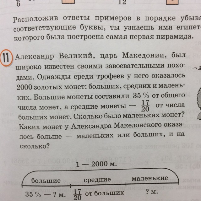 1)2000:100•35=700(м)-большие2)700:20•17=595(м)-средние3)2000-(700+595)=705(м)-маленькие4)705-700=5(м)
