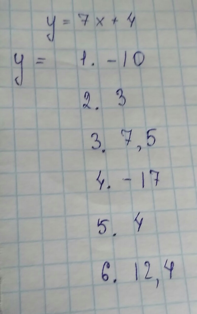 Функция задана формулой у=7х+4.По данным значениям аргумента найдите соотвествующие значения функции и заполните таблицу.