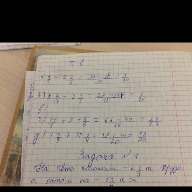 Если так, далее мы должны дроби привести к общему знаменателю. ( а вообще 7 33 это и есть 8) Общий знаменатель 15(у первого слагаемого доп. множитель 5, а у второго 3), то есть 7 1515-2 615=5 915 (сокращаем)=5 13.