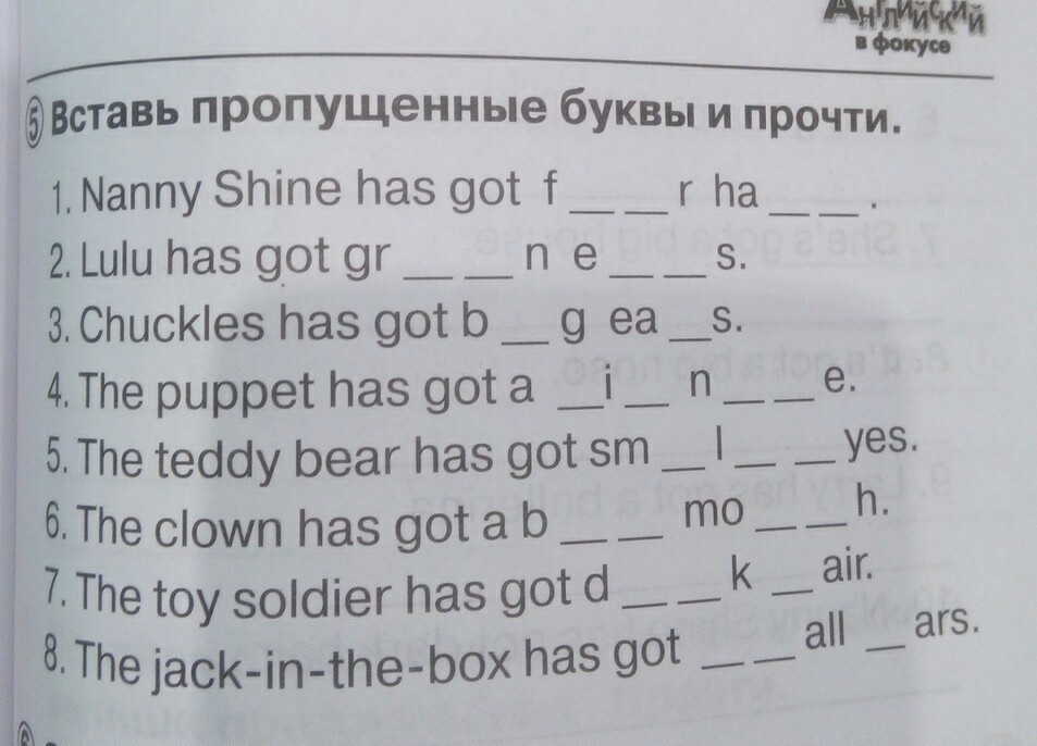 1.Fair hair.2.Green eyes.3.Big ears.4.Big nose.5.Small eyes.6.Big mouth.7.Dark hair.8.Small ears.