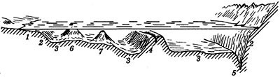 4 — срединно-океанический хребет с рифтовой впадиной в осевой части,