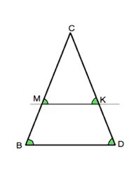 МК║BD; СВ - секущая. ⇒ ∠СМК=∠СВD как соответственные.
