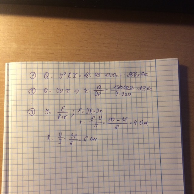 3.Источником тока в цепи служит батарея с ЭДС 60В .Напряжение на зажимах батареи 36 В,а сила тока в цепи 6 А.Определите внешнее и внутренее сопротивление электрической цепи.