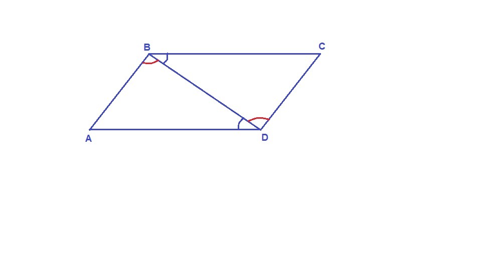 BD - общая сторона для треугольников ADB и CBD, значит эти треугольники равны по стороне и двум прилежащим к ней углам.