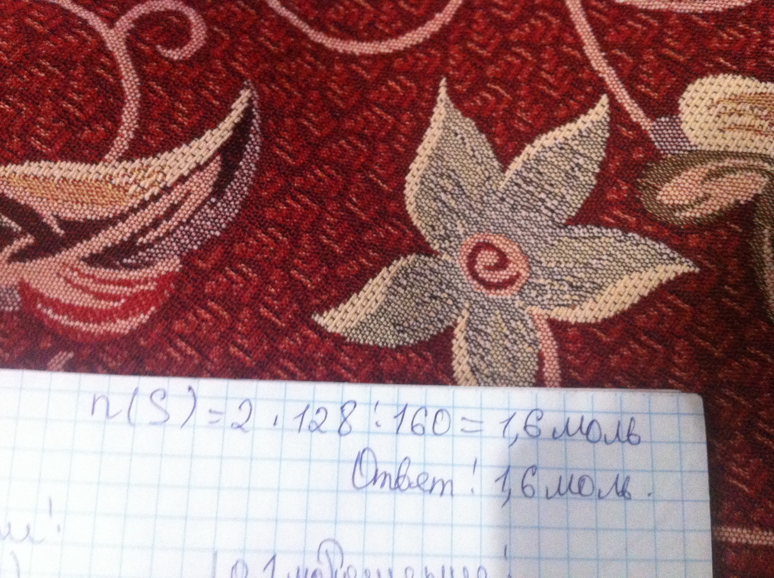В результате горения серы образовался оксид серы ( 6) массой 128 грамм . Какое количество серы сгорело ( 1,6 ; 2 моль ; 6 моль )
