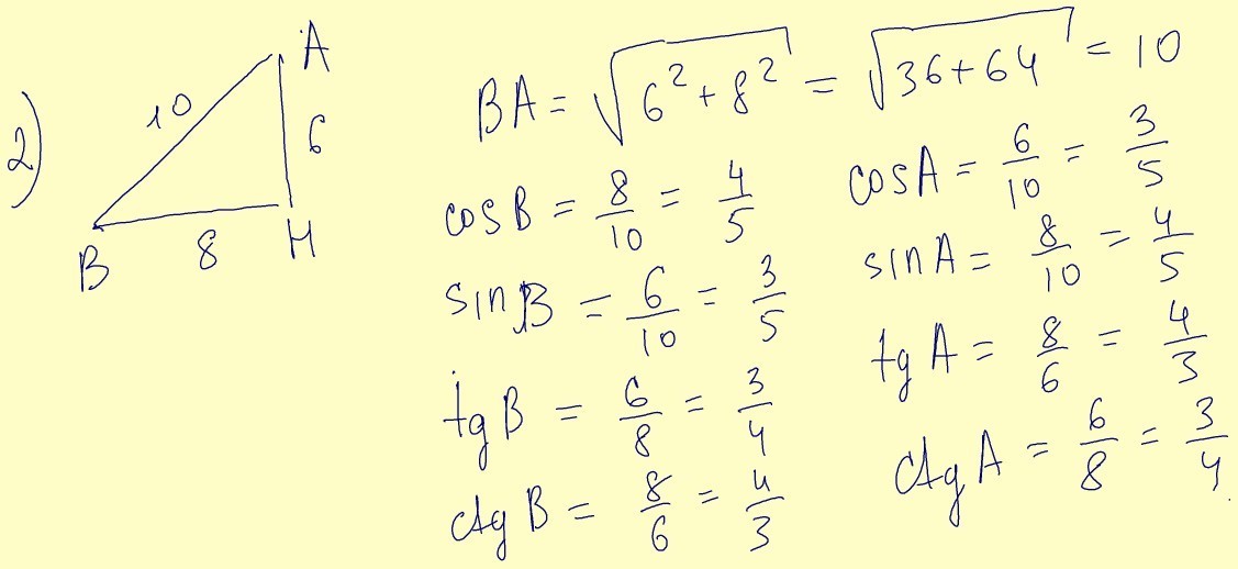 в прямоугольном треугольнике катеты ВН и АН равны соответственно 8 и 6 см.