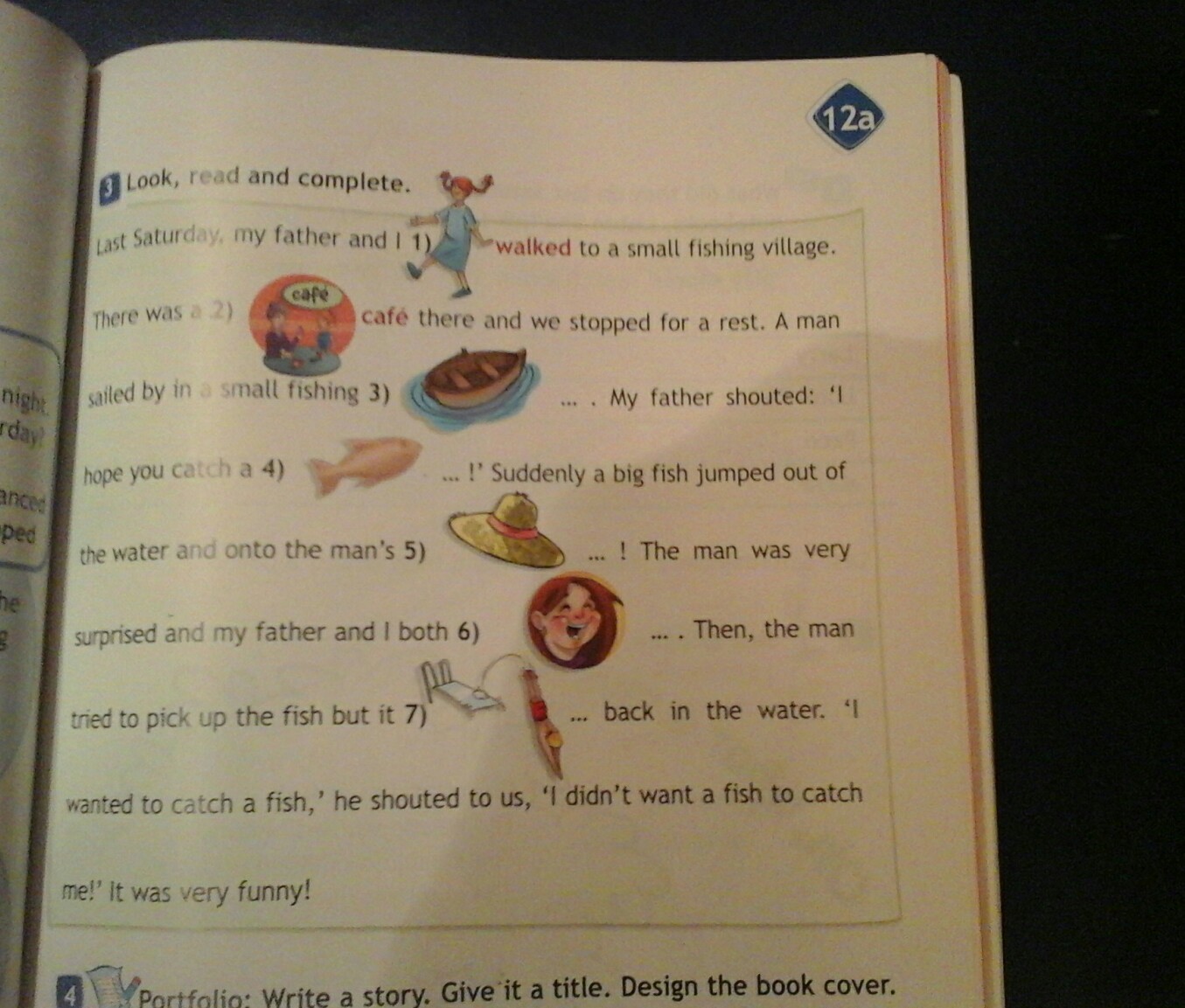 Last Saturday, my father and I walked to a small fishing village. There was a cafe there and we stopped for a rest. A man sailed by in a small fishing boat. My father shouted: 'I hope you catch a fish!' Suddenly a big fish