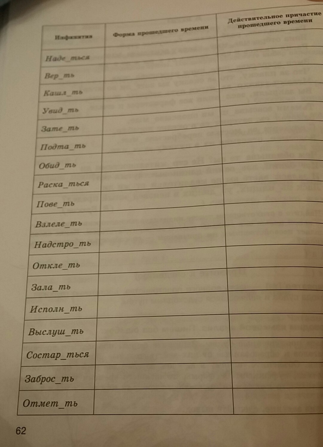 Надо: вставить пропущенные буквы. Записать формы прошедшего времени данных глаголов и оброзовать от них действительные причастия прошедшего времени.