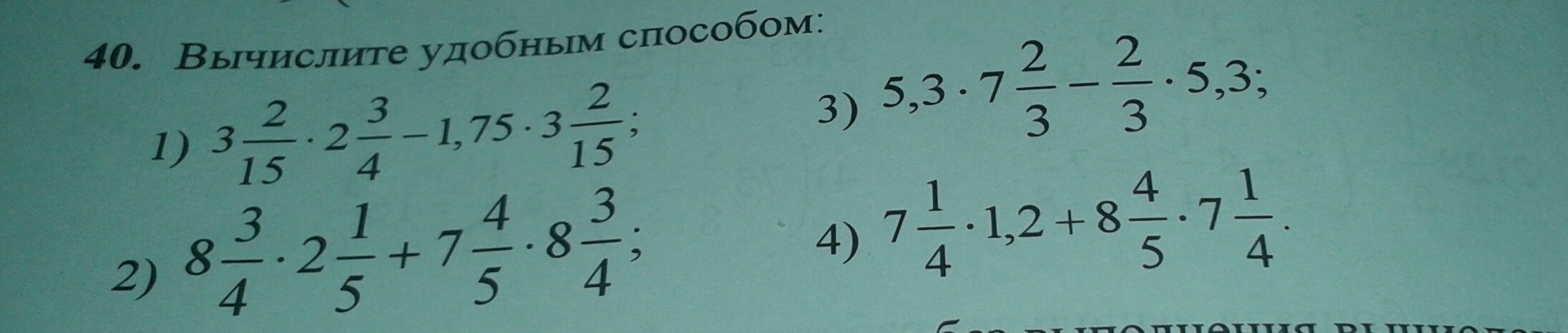 1) 3 2/15 * (2 3/4 - 1,75) = 3 2/15 * 1 = 3 2/15
