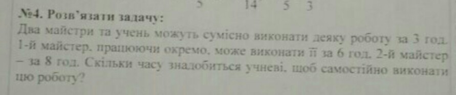 4) 1/3 - 1/6 - 1/8 = 8/24 - 4/24 - 3/24 = 1/24 - выполнит ученик за 1 ч