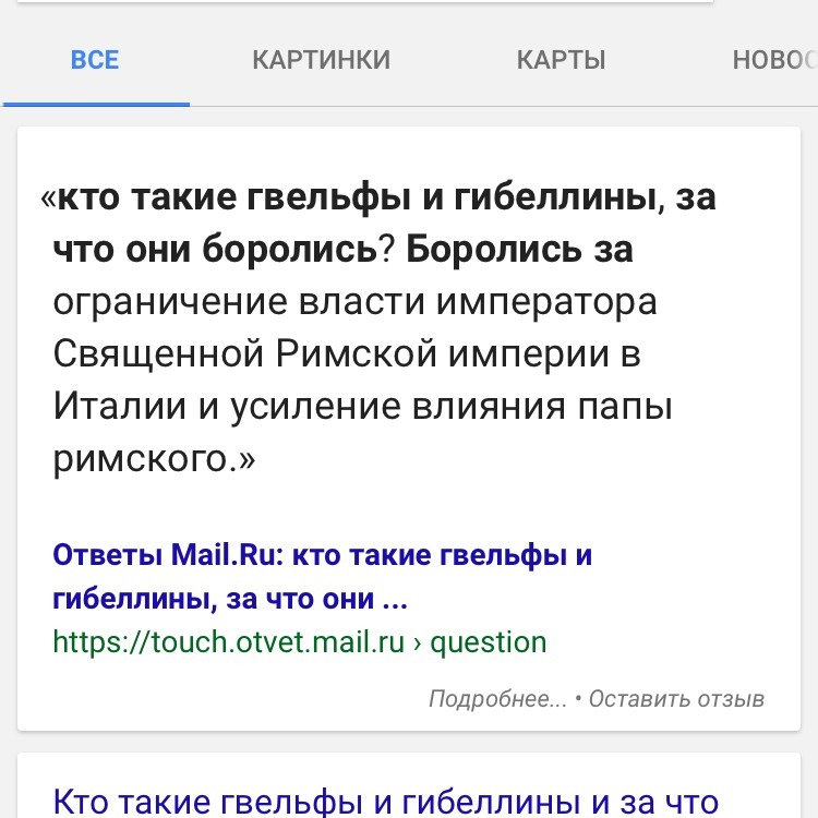 Гвельфы и Гибеллины наименование двух враждующих по религиозно-политическим молитвам партий в Италии в 12-15вв первые поддерживали папство вторые германских императоров.