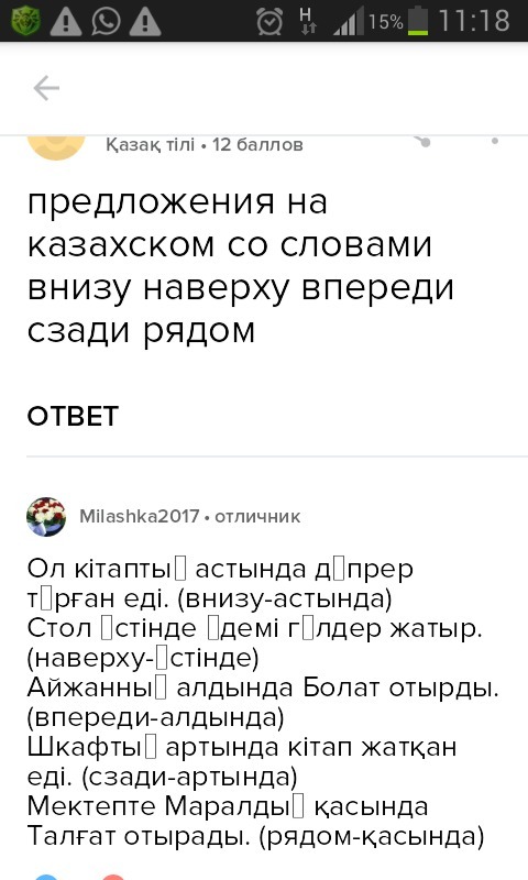 помогите с каждым этим словом составить предложение : астында- внизу , устінде- наверху, алдында - впереди , артында- сзади, қасында- рядом;