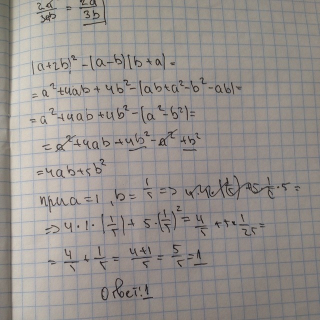 +(b–a)(b+a) = a^2+4ab+4b^2+b^2–a^2=4ab+5b^2=b(4a+5b)=