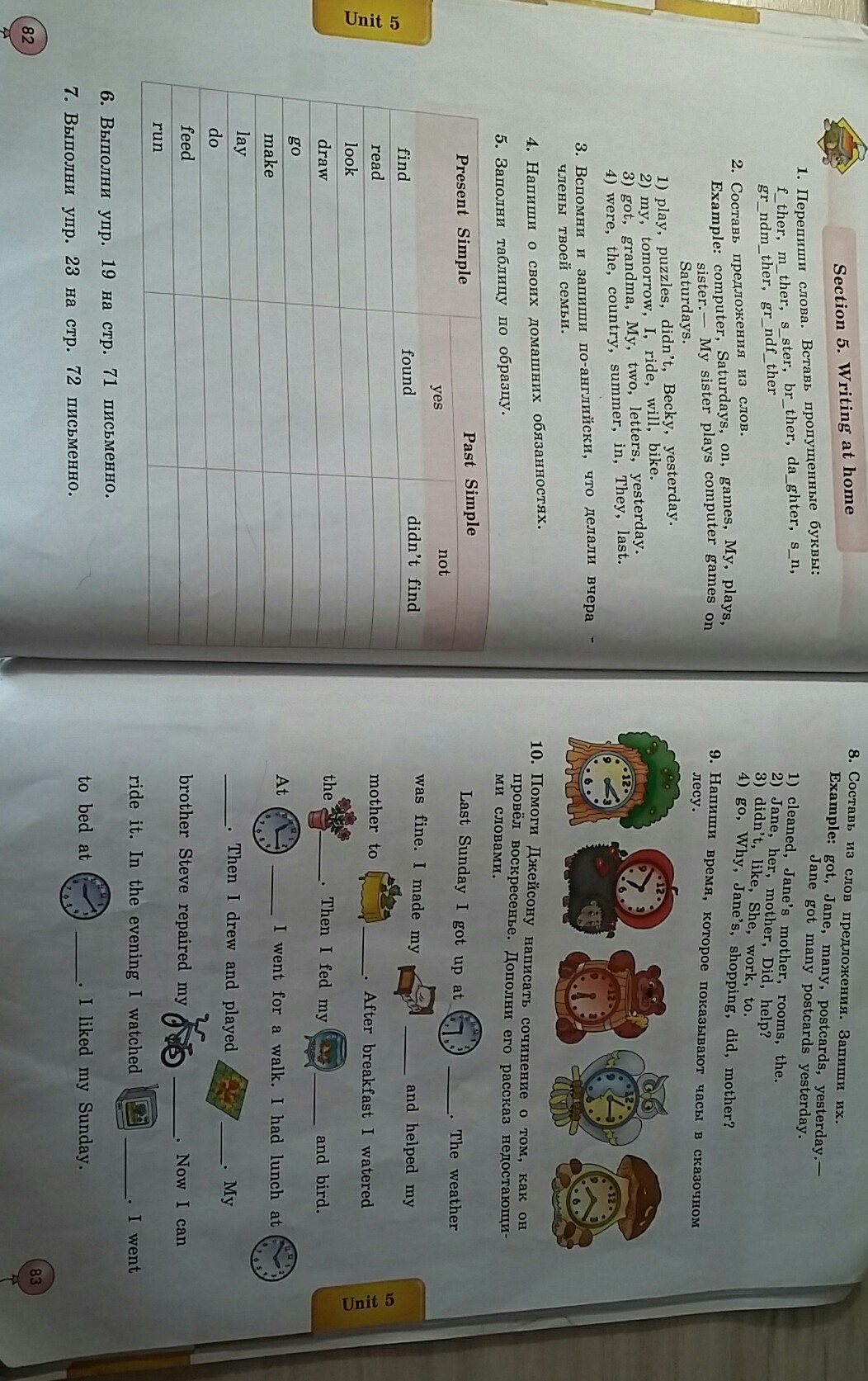 3. Bcпомни и запиши по-английски, что делали вчера члены твоей семьи.