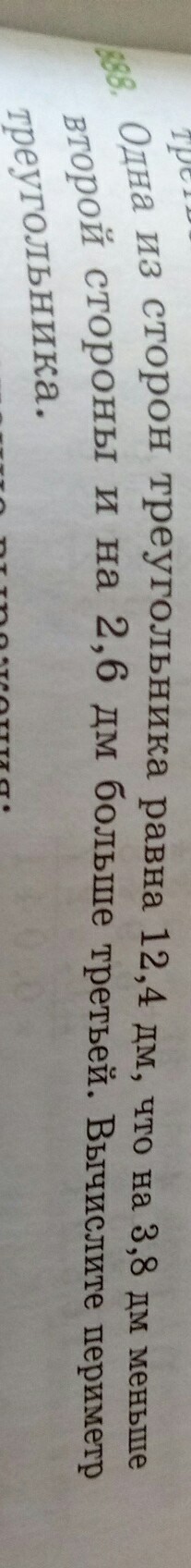 3 сторона - 12,4 - 2,6 = 9,8 дм