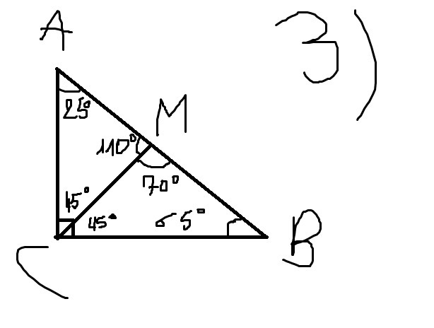 3.Так как CM-биссектриса, то Угол ACM=Угол MCB=45(градусов).