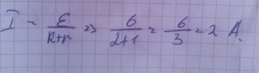 Электрическая цепь состоит из источника тока с ЭДС 6В , внутреним сопротивлением 2 Ом и проводника с электрическим сопротивлением 1 Ом , чему равна сила тока в цепи ?