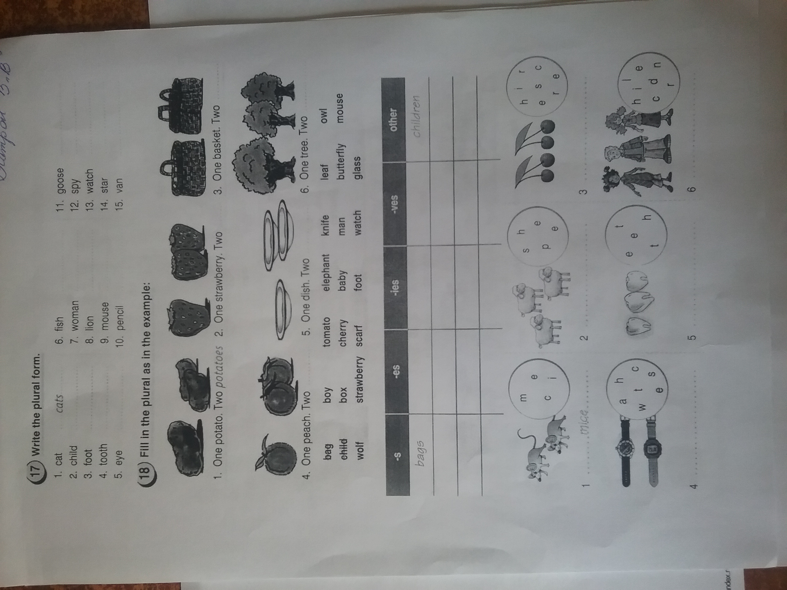 Какое задание? Все? 17: children; feet; teeth; eyes; fish; women; Lions; mice; pencils; Geese; Spies;watch; stars; vans