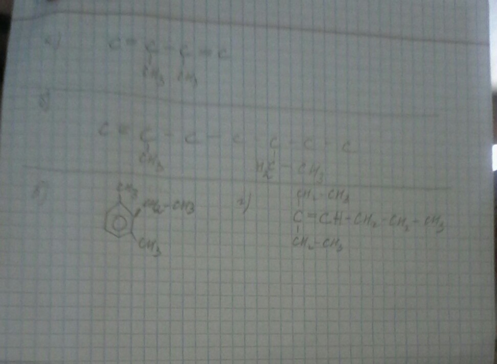сорри за качество. под А цепочка из 4 атомов углерода, двойная связь после первого и третьего. от второго и третьего отходят группы СН3