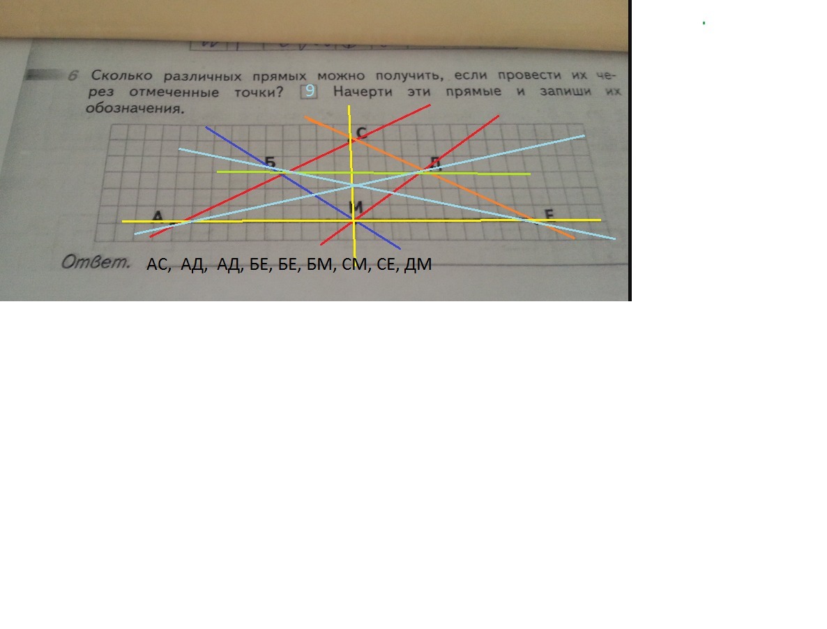 Сколько различных прямых можно получить если провести их через отмеченные точки начертите прямые и запиши их обозначения