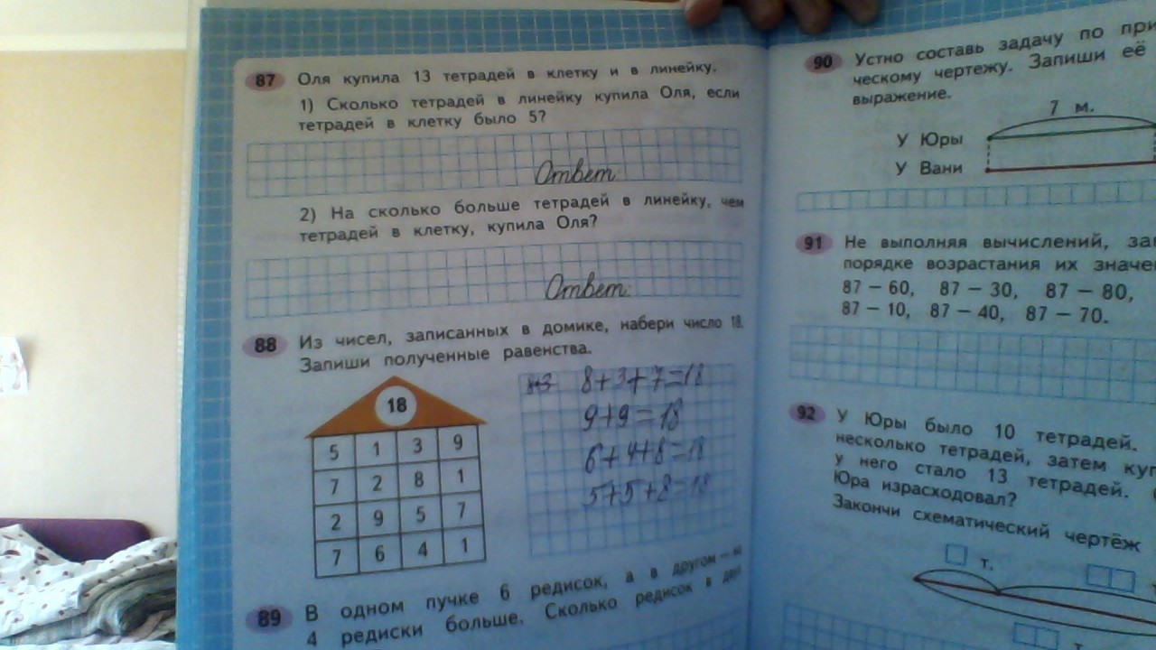 2) 8-5 = 3 тетради (на 3 тетради больше в линейку)