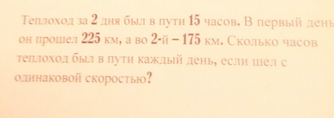 4)175 : 25 = 7 (часов)- теплоход был в пути во второй день